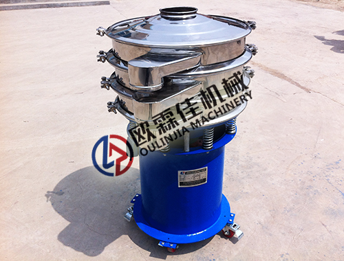 三次元旋振篩(簡稱“旋振篩”)是歐霖佳機械主營產品之一,是一種高精度篩分機,總的功能是把干物料分離成不同的粒徑組或從液體中分離出固體。被篩選物料由篩分機上方進料口落入篩面,物料在離心電機產生的三次元振動下在篩面進行螺旋擴散運動,粒徑較小物料透過篩孔自由落下,每種規格的物料均由可360度任意旋轉排料口自動排出完成篩分工作(圖片中排料口重疊是為運輸方便,實際使用中每一排料口均可360任意旋轉)。