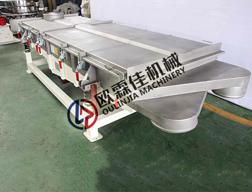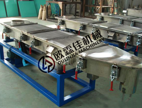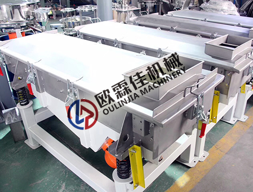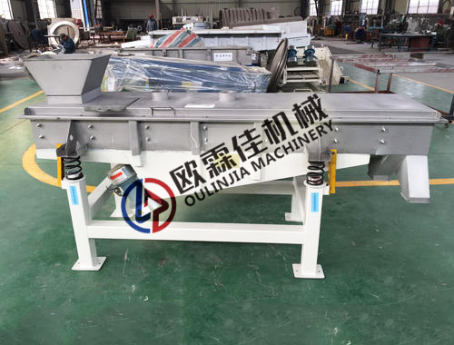 直線振動篩是歐霖佳機械主營產品之一,該篩分機是利用臥式振動電機激振作為振動源,使物料在篩網上被拋起,同時向前作直線運動,故稱作直線振動篩,又稱直線篩;物料從給料機均勻地進入篩分機的進料口,通過多層篩網產生數種規格的篩上物、篩下物、分別從各自的出口排出。具有耗能低、產量高、結構簡單、易維修、全封閉結構,無粉塵溢散,自動排料,更適合于流水線作業。